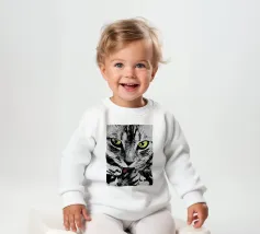 Elegante illustrazione del muso di un gatto intelligente, ideale per la stampa su prodotti come abbigliamento, borse, tazze e altro ancora. Aggiungete raffinatezza e fascino ai vostri articoli con questo grazioso disegno felino!