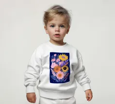 Questa opera d'arte floreale presenta un ricco sfondo acrilico blu scuro, che crea un contrasto sorprendente con i fiori e i rami in stile naif dipinti a mano che incorniciano la composizione. I fiori, nei toni tenui del blush e nelle tonalità calde, sono astratti e di una semplicità affascinante, che evoca un senso di innocenza e capriccio. Le pennellate delicate e la tavolozza calda conferiscono un'atmosfera accogliente e invitante, mentre lo sfondo blu scuro aggiunge profondità e raffinatezza. Il pezzo irradia un equilibrio di calore e serenità, perfetto per un'atmosfera rilassante ma visivamente coinvolgente.