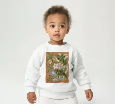 Le nostre felpe per neonati sono realizzate all'85% in cotone biologico ed etico e al 15% in poliestere riciclato.