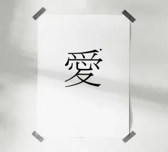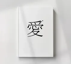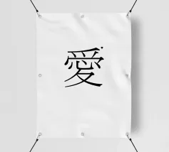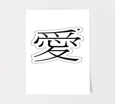 愛 come te (amore) in giapponese. Tipografia in nero e bianco (trasparente). È possibile cambiare il colore dello sfondo. Poster tipografico minimalista.