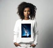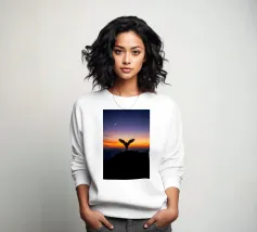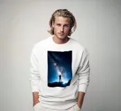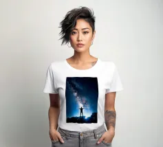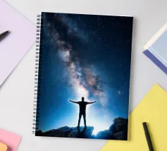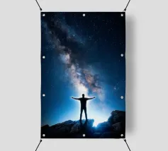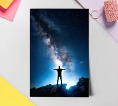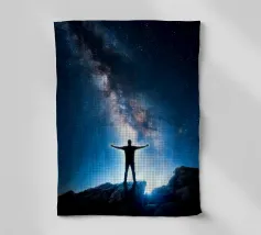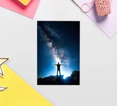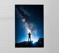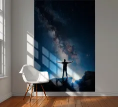 Questa splendida opera d'arte cosmica cattura una sagoma solitaria in piedi sulla cima di una montagna con le braccia spalancate sotto il cielo brillante della Via Lattea. Le stelle mozzafiato, la nebulosa incandescente e il blu profondo della notte creano un senso di meraviglia, libertà e connessione con l'universo. Perfetto per i sognatori, gli osservatori di stelle, gli spazi spirituali e gli amanti del cielo notturno, questo disegno ispirazionale porta mistero e motivazione in qualsiasi stanza. Ideale per camere da letto, aree di meditazione, uffici e interni moderni alla ricerca di un'audace dichiarazione cosmica.