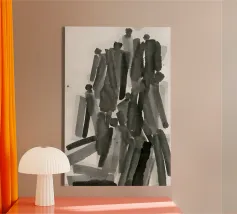 Un'opera d'arte contemporanea che raffigura un gruppo di figure in toni monocromatici ad acquerello. Questo pezzo racconta una storia di movimento e comunità, perfetta per gli spazi moderni che desiderano creare interesse visivo e riflessione. Ideale per gallerie, spazi di lavoro o soggiorni, aggiunge un senso di profondità e carattere a qualsiasi ambiente.