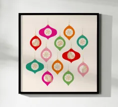 Aggiungete un tocco di fascino giocoso al vostro arredamento natalizio con questa colorata illustrazione astratta dell'albero di Natale. Realizzato con audaci forme grafiche ritagliate in un allegro arcobaleno di colori pastello (rosa, giallo, arancione, verde e sormontato da una sorprendente stella nera), questo disegno dà un tocco moderno alle tradizionali icone natalizie. Su uno sfondo rosa tenue, crea un'atmosfera femminile e festosa, fresca ed elegante. Perfetta per l'arte murale, i cuscini, le decorazioni per la casa e per i regali di Natale, questa illustrazione illuminerà sicuramente la vostra stagione natalizia con la sua estetica unica e gioiosa.