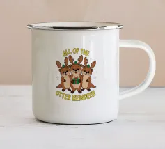 Tre lontre con corna da renna sono allegramente in piedi insieme, ognuna con un abbigliamento festivo e una con un regalo in mano. I fiocchi di neve li circondano, rendendo il tema natalizio ancora più interessante, e le parole "All of the Otter Reindeer" appaiono sopra e sotto.