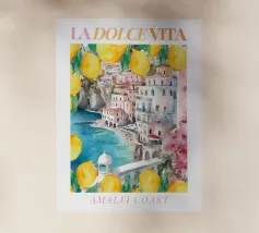 Vi presentiamo il nostro piccolo angolo di Juniqe, dove proponiamo arte a tema italiano che vi trasporterà direttamente in una pittoresca cittadina della Costiera Amalfitana.