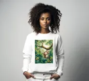 Un'allegra scena della giungla con due simpatiche scimmie sedute su un'altalena appesa al ramo di un albero. Perfetto per le stanze dei bambini o per gli interni a tema giungla, porta energia giocosa e verde lussureggiante su qualsiasi parete.