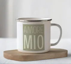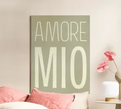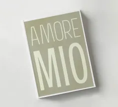 La scritta "Amore Mio" in stile boho su sfondo verde pastello. La tipografia moderna incarna la tendenza italiana e irradia un appassionato messaggio d'amore.
