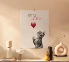 Questo gatto sa come sciogliere i cuori! Con il suo sguardo affettuoso e il palloncino a forma di cuore rosso, non farà solo sorridere i fan dei gatti. Perfetto come regalo per San Valentino, per un compleanno o semplicemente per rendere felice qualcuno. Il design moderno e minimalista colpisce per l'illustrazione finemente disegnata in bianco e nero abbinata a un deciso accento rosso; semplice, elegante ed emozionante allo stesso tempo. Un regalo meraviglioso per gli innamorati, gli amanti dei gatti e per chiunque voglia donare il proprio cuore in modo affascinante.