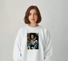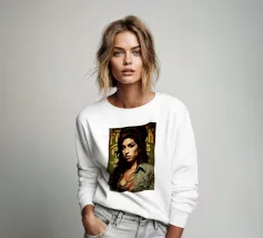 Amy Winehouse sotto una nuova luce: questo ritratto moderno mostra l'icona della musica in stile street, con felpa con cappuccio, cappellino e tatuaggi leggendari. Una combinazione riuscita di atteggiamento retrò e look urbano contemporaneo. Perfetto per i fan di Amy, della cultura pop e delle personalità forti. Ideale come stampa d'arte o poster per salotti, studi o come regalo per i veri amanti della musica.