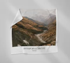 Un sereno sentiero di montagna si snoda attraverso le vaste valli del Circuito dell'Annapurna, circondato da imponenti giganti himalayani e dalla frizzante aria alpina. Questa immagine cattura la cruda bellezza e la quiete spirituale di uno dei percorsi di trekking più iconici del mondo. Un'aggiunta perfetta per gli avventurieri e i sognatori della montagna.