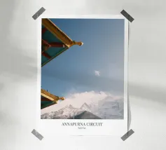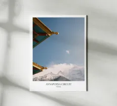 Una splendida fotografia del Massiccio dell'Annapurna scattata lungo l'iconico Circuito dell'Annapurna del Nepal. Cime imponenti squarciano il cielo, avvolte da nuvole e luce: un tributo drammatico a una delle catene montuose più leggendarie del mondo. Questo pezzo porta la maestosità dell'Himalaya nella vostra casa, perfetto per i trekker, gli esploratori e gli amanti dei paesaggi selvaggi.