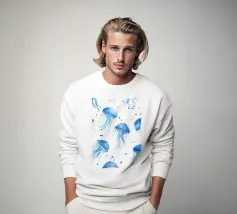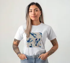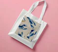 Un vivace motivo dipinto a mano di aragoste blu navy su uno sfondo di sabbia soffice. Questo disegno nautico ad acquerello aggiunge un tocco giocoso ma raffinato all'arredamento della casa al mare, alle stampe tessili o al branding a tema costiero.