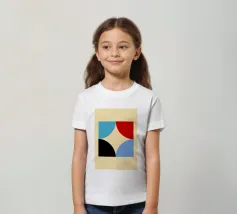 Questo poster d'arte geometrica astratta presenta un'audace composizione di quattro forme a quarto di cerchio in colori sorprendenti: rosso, blu, nero e azzurro. Disposte agli angoli di una cornice quadrata, creano uno spazio negativo unico a forma di diamante al centro. Il design minimalista e i colori contrastanti conferiscono un'atmosfera grafica retrò. Prodotto come arte digitale di alta qualità a 7000x5000 pixel e 300 dpi, questo poster garantisce forme nitide e colori vivaci per un'opera d'arte da parete di alta qualità.