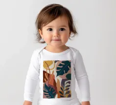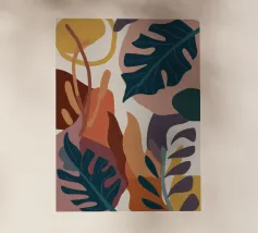 Una sofisticata composizione astratta di forme botaniche in una tavolozza tenue e terrosa di marrone, beige e bianco. Le forme sovrapposte creano un senso di profondità e una calma eleganza organica.