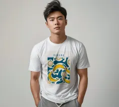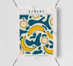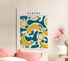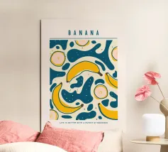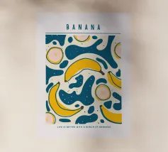 Un vivace disegno di banane in un moderno stile pop art! Questo disegno colorato presenta banane gialle e vivaci e forme stilizzate in blu e crema che emanano energia e freschezza. Perfetto come murale, su tazze o come accessorio di stile per la cucina, il soggiorno o l'ufficio. Per gli amanti della frutta, per gli appassionati di design tropicale o come decorazione moderna, questo motivo porta il buon umore e il colore nella vita di tutti i giorni. Un regalo ideale per gli amanti dell'arte e del design che cercano prodotti unici e allegri.