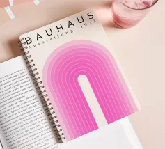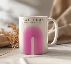 Questo elegante motivo Bauhaus in rosa e beige cattura lo spirito dell'iconico movimento artistico. Le linee curve e il design pulito ricordano la leggendaria mostra Bauhaus del 1923 e combinano il minimalismo con una geometria sorprendente. Perfetta per l'arte da parete, le custodie dei cellulari, le magliette o le tazze, per portare un tocco di arte moderna in casa o nella vita di tutti i giorni. Un must per gli amanti del design retrò e dell'estetica Bauhaus.