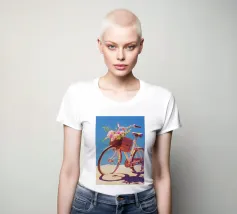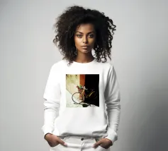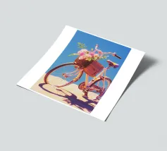 Questo disegno celebra l'armonioso connubio tra natura e libertà, con un'affascinante bicicletta adornata da vivaci fiori in fiore. Le ruote della bicicletta sono circondate da delicati petali e da una vegetazione rigogliosa, creando una scena che evoca un senso di pacifica esplorazione e le semplici gioie della vita. La palette di colori tenui e la composizione giocosa donano un tocco di primavera e di avventura a qualsiasi spazio o guardaroba.