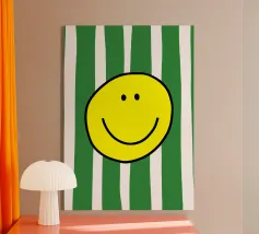 Un grande sorriso su strisce morbide e moderne. Le parole semplici e allegre e i toni caldi danno un tocco di energia giocosa e di fascino accogliente, perfetto per ravvivare le camere da letto, gli spazi creativi o qualsiasi altro luogo che accolga un po' di gioia.
