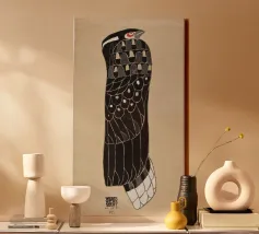 L'Uccello del Fregio di Stoclet (1905-1911) di Gustav Klimt fa parte del ciclo decorativo a mosaico realizzato per il Palazzo Stoclet di Bruxelles. La composizione presenta un uccello stilizzato circondato da ricchi motivi geometrici e forme ornamentali fluenti. Klimt combina oro di ispirazione bizantina, forme astratte e motivi naturali per creare un senso di eleganza e armonia. Il design riflette l'ideale della Secessione di Vienna di fondere l'arte con l'architettura, trasformando lo spazio interno in un'opera d'arte unificata.