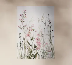 Un poetico campo di fiori in acquerello: delicate sfumature di rosa e bacche danzano tra erbe sottili e steli selvatici. Questo poster floreale combina la naturalezza con un tocco di romanticismo boho e crea un ambiente calmo ed elegante. Perfetto per il soggiorno, la camera da letto o il corridoio. Ispirato alla natura incontaminata - ideale per interni moderni, scandinavi o rustici.