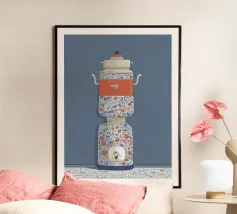 Un campo infinito di fiori grafici nei colori vivaci dell'arancio, del blu e del crema: moderno, giocoso e pieno di energia. La ripetizione ritmica crea una sensazione di infinito e leggerezza. Questo motivo porta il calore dell'estate e una moderna dichiarazione di design in ogni stanza.