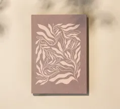 Un'elegante composizione disegnata a mano di fogliame infinito nei colori tenui del pesca e del crema pastello, su uno sfondo ricco e caldo di mousse moka. Delicate foglie, piccole e grandi, si intrecciano a formare una graziosa cornice rettangolare, evocando un'estetica tropicale selvaggia e boho-chic. Questo design senza tempo conferisce un senso di bellezza naturale e di raffinatezza, perfetto per valorizzare le vostre pareti e non solo.