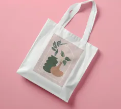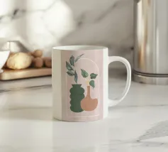 Una composizione moderna ed estetica che presenta due eleganti vasi con un fogliame verde e rigoglioso, su uno sfondo rosa tenue con un elemento ad arco. Il design equilibrato e le forme organiche creano un'atmosfera serena e senza tempo, perfetta per gli interni contemporanei.
