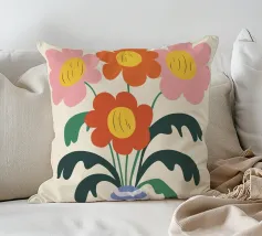 Un vivace bouquet di fiori nelle calde tonalità del rosso e del rosa, incorniciato da foglie verdi e da un vaso dal design a righe. Questo motivo irradia gioia di vivere ed eleganza e porta un tocco di natura nella vostra casa. Perfetto per prodotti come murales, cuscini, tazze o custodie per cellulari, questo disegno floreale è un'aggiunta elegante a qualsiasi ambiente o un regalo ideale per gli amanti dei fiori.