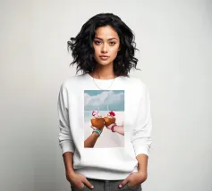 Grazioso dipinto digitale di una donna sicura di sé in una fluente vestaglia bianca seduta su una spiaggia rocciosa con palme e un vibrante sole arancione. Questa elegante e serena scena costiera evoca lusso, calma e vibrazioni tropicali. Perfetto per gli amanti della moda, dell'arte moderna e dell'arredamento tropicale. Aggiunge raffinatezza e calore a soggiorni, camere da letto e uffici. Regalo ideale per i collezionisti d'arte e gli appassionati di ritratti contemporanei ispirati alla spiaggia.