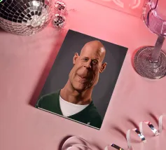 Caricatura umoristica del noto attore americano e hollywoodiano, nonché eroe del cinema, Bruce Willis. Una delle caricature realizzate per la serie Celebrity Sunday, in cui un personaggio famoso viene ritratto in un giorno. L'idea è di mostrarli come in una fototessera per avere coerenza.