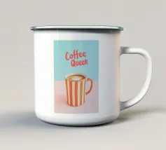 La tazza "Coffee Queen", con il suo design retrò a strisce arancioni e la tipografia minimalista, è l'accessorio di design perfetto per ogni amante del caffè che desidera gustare espresso e cappuccino con stile.