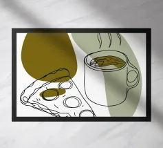 L'abbinamento perfetto per iniziare la giornata o per godersi un momento di relax! Questo disegno raffigura una fragrante tazza di caffè e un delizioso trancio di pizza, una combinazione che molti amano.