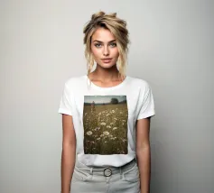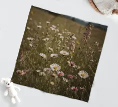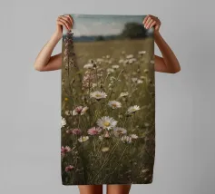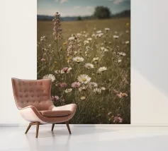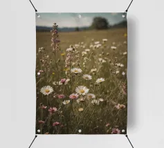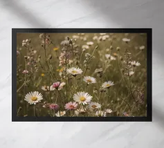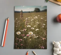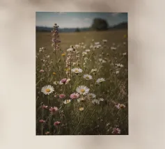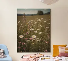 Fotografia di un campo di fiori: Una fotografia mozzafiato di un prato vibrante in piena fioritura, che mostra un mare di fiori colorati che si estende fino all'orizzonte. Questa immagine porta la bellezza della natura in casa, irradiando serenità e gioia.