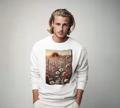 Fotografia di un campo di fiori: Una fotografia mozzafiato di un prato vibrante in piena fioritura, che mostra un mare di fiori colorati che si estende fino all'orizzonte. Questa immagine porta la bellezza della natura in casa, irradiando serenità e gioia.