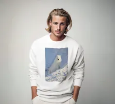 Questo disegno minimalista mostra un cane bianco in piedi in un paesaggio invernale candido. La palette di colori ridotta e la composizione chiara creano un'estetica moderna e rilassante, perfetta per gli amanti degli animali e per gli appassionati di arte elegante. Che si tratti di un murale, di una tazza, di una cover per cellulare o di un cuscino, questo motivo porta la tranquilla bellezza dell'inverno e l'eleganza dei motivi animali in ogni casa.