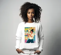 Una composizione astratta caotica e divertente in stile Memphis, con un assortimento casuale di forme geometriche, ghirigori e motivi. L'opera d'arte è energica, giocosa e ha una fresca atmosfera retrò.