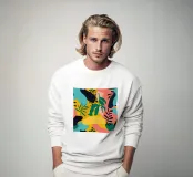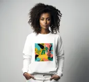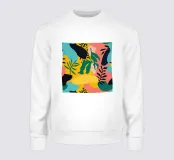 Un disegno caotico ed energico di foglie e forme tropicali astratte in una tavolozza di colori audaci e vibranti. L'opera è una celebrazione della bellezza selvaggia e indomita della giungla.