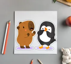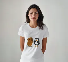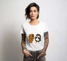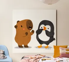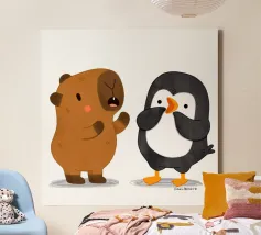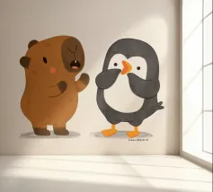 Disegno molto carino e divertente di capibara e pinguino che parlano. Di cosa staranno parlando?