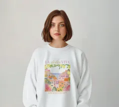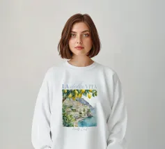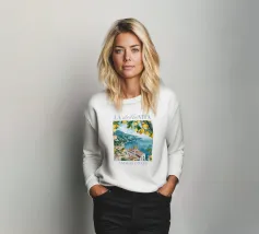 Celebrate la dolce vita con questa vivace stampa d'arte a collage ispirata a Capri, in Italia. Un incantevole dipinto di un villaggio di mare è incorniciato da allegri motivi di agrumi, uno scooter retrò e un cactus con gli occhiali da sole, il tutto stratificato con audaci forme astratte in arancione, magenta e verde acqua. È il pezzo perfetto per tutti coloro che desiderano le vibrazioni mediterranee, l'estetica retrò e l'eccentricità dell'arredamento ispirato ai viaggi.