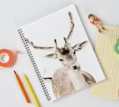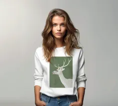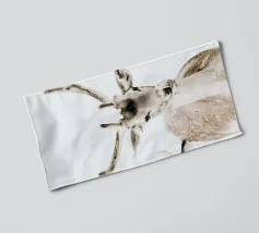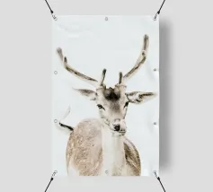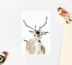 Una fotografia di un bellissimo cervo selvatico che mette in mostra le sue imponenti corna mentre si lecca i baffi.Perfetto per gli amanti degli animali e per chi cerca un tocco di arredamento ispirato alla natura.