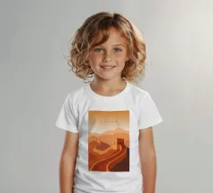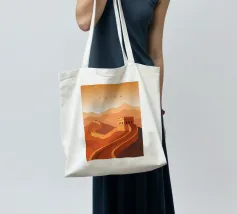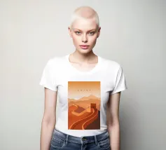 Design di viaggio minimalista della Cina con la famosa Grande Muraglia cinese in stile stilizzato e le montagne e le colline che caratterizzano il paesaggio della regione. Punto di riferimento cinese e paesaggio montano in stile minimalista.