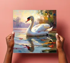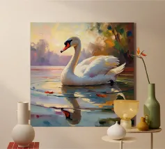 Questo dipinto a olio non raffigura semplicemente un cigno, ma cattura piuttosto un senso di eleganza e purezza.