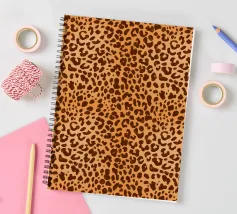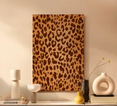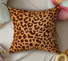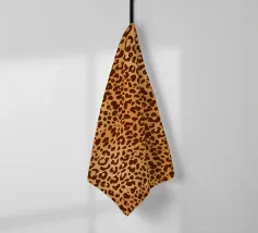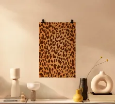 Elegante stampa animalier classica con macchie di leopardo marrone scuro, su sfondo marrone cammello ombré.