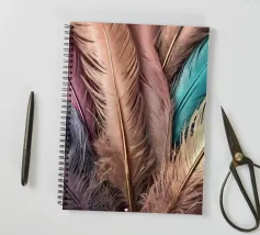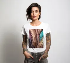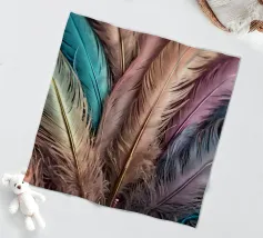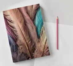 Un vivace assortimento di piume di diversi colori è disposto in modo creativo su una superficie piana, mettendo in risalto le loro forme uniche e le loro morbide trame. L'esposizione mette in risalto l'estro artistico.