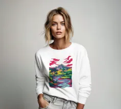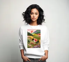 Un paesaggio panoramico delle dolci colline toscane, con strade tortuose, cipressi e campi resi con una tavolozza di colori ricchi e caldi che cattura la bellezza della campagna italiana.