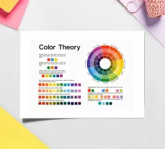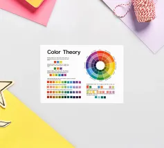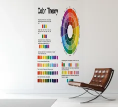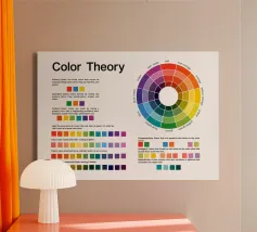 Questo poster didattico sulla teoria dei colori è una guida visiva perfetta per artisti, designer, studenti e insegnanti. Spiega le relazioni tra colori primari, secondari e terziari, oltre alle definizioni di tonalità, tinta, tono e ombra. Una ruota dei colori dettagliata sulla destra mostra schemi complementari, analoghi e monocromatici, facilitando la comprensione dell'armonia dei colori. Ideale per le aule scolastiche, gli studi d'arte o per chiunque stia imparando le basi del colore.