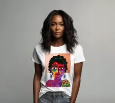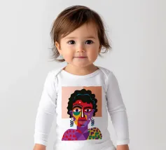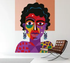 Un potente ritratto astratto di un volto reso in colori primari con linee e motivi audaci ed espressivi, che evocano un senso di energia primordiale e di cruda emozione artistica.