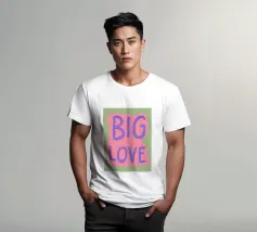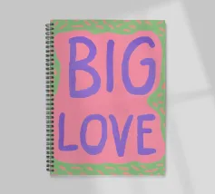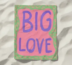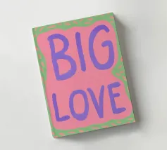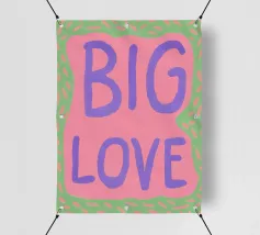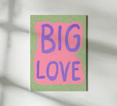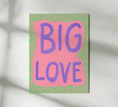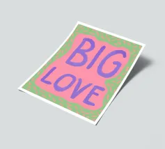 "Big Love" irradia affetto e romanticismo con vivaci colori pastello e scritte in grassetto. Con un motivo giocoso di punti e forme, questo allegro poster di testo è perfetto per gli innamorati o come decorazione estiva. La combinazione di rosa, viola e verde aggiunge un tocco di affetto a qualsiasi interno.