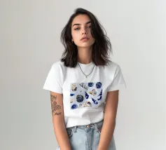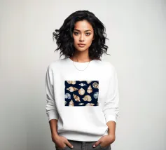 Questo espressivo motivo ad acquerello presenta un'impressionante varietà di conchiglie a spirale e coniche dipinte nei toni dell'indaco profondo, del tortora caldo e dell'avorio. Su uno sfondo blu tenue, questo pezzo cattura la fresca eleganza della costa, ideale per tessuti, carta da parati o decorazioni a tema nautico.