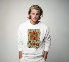 L'immagine è un poster motivazionale dal design accattivante. Lo sfondo è viola scuro e al centro è riportato il messaggio a grandi lettere arancioni: "BE FURIOUS". Sotto, in caratteri bianchi più piccoli, è riportata la frase: "LA VITA È TROPPO CORTA PER ESSERE NORMALE". L'intero design è vivace e accattivante e incoraggia l'individualità e l'unicità.